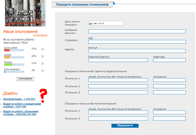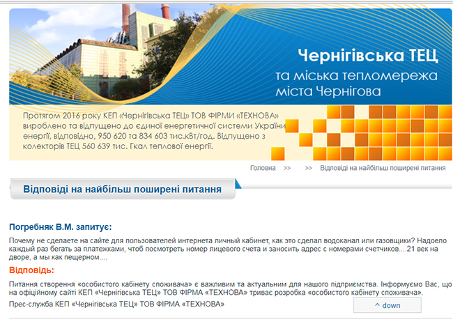 КЭП «Черниговская ТЭЦ» ООО «Фирма «ТехНова» предоставила абонентам возможность передачи информации о показаниях счетчиков через свой официальный сайт. К сожалению, «личный кабинет» абонента на сайте отсутствует, а постоянное заполнение формы вызывает некоторые недовольства у абонентов.