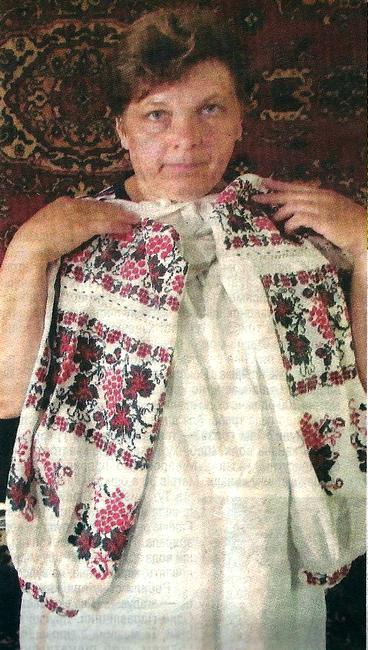 Оцю сорочку мати собі ще дівкою вишивала. У ній і заміж виходила, — показує 45-річна Наталія Медведєва сценічний костюм, у якому виступає її мати, 72-річна Марія Вакуленко з села Козацьке Бобровицького району.