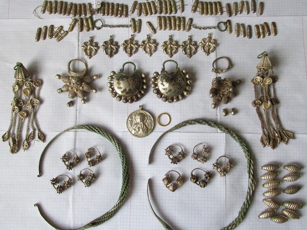 Скарб чоловік виявив за допомогою металошукача біля села Троїцьке Чернігівської області. Новиною він відразу поділився на форумі антикварів і розповів, що знахідка була на глибині всього 40—50 см. За сережки, намиста, кулони і персні (всього 113 предметів) покупці готові були викласти 300 тис. гривень, повідомляють «Вести».