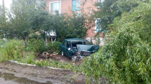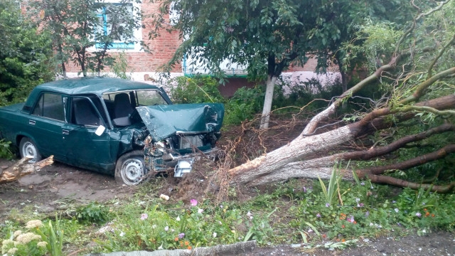У Мені автівка викорчувала дерево, а сама перетворилася на «гармошку» (фото, відео)