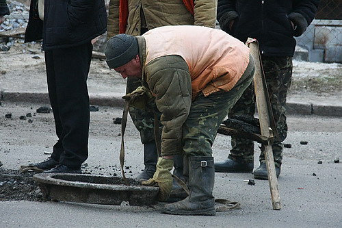 В центре Чернигова решили отремонтировать одну яму (фото)