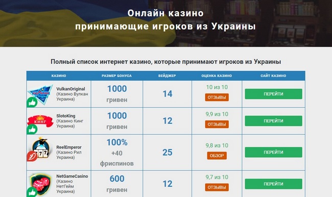 Список топовых украинских казино на гривны
