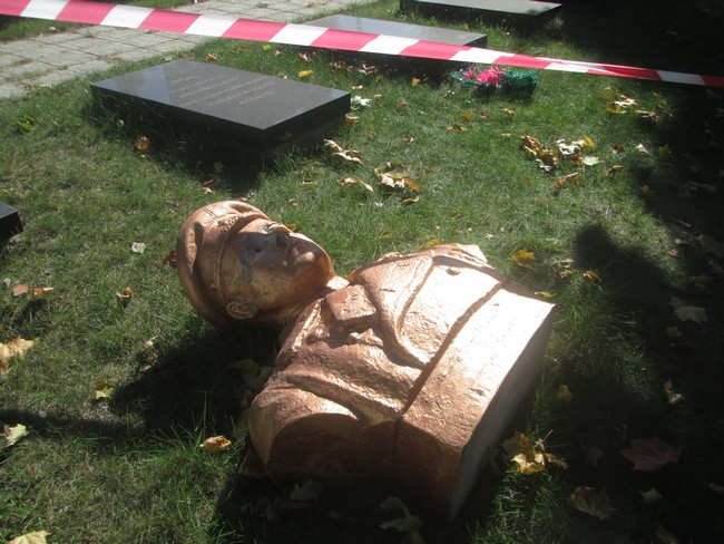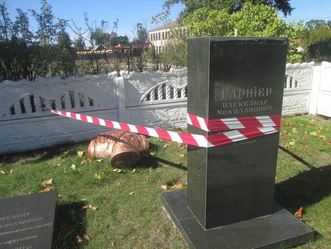 Сегодня утром в Корюковскую райгосадминистрацию обратился местный житель с сообщением об акте вандализма. Сообщалось, что на улице Соборной (бывшей Кирова) неизвестными был сброшен с постамента бюст Александра Гарниера.