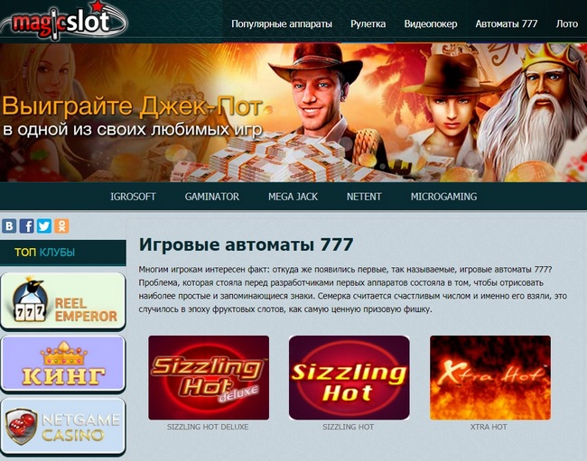 Категория игровых автоматов 777 считается одной из наиболее посещаемых во всемирной паутине. Они были придуманы еще на заре развития игровой индустрии. Главная особенность этих слотов - наличие простых, запоминающихся символов, понятных условий формирования ценных комбинаций и, естественно, знакомая тематика - фрукты либо же драгоценные камни. Стоит отметить, что игры типа 777 получили подобное название исходя из присутствия наиболее ценного символа - 7. Больше о том, какие еще преимущества скрывают в себе игровые автоматы 777, можно узнать на сайте Magic Slot.