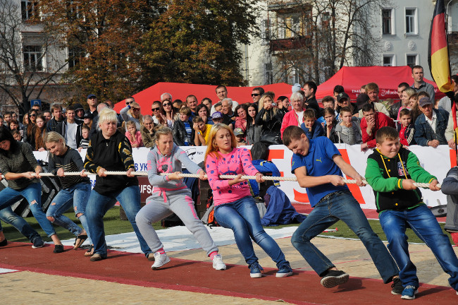 Атлеты соревновались в эстафете по переноске тяжестей, в толкании 90-килограммовой гантели одной рукой, в перетягивании каната, таскали тяжелый автомобиль и в других зрелищных силовых упражнениях. В перетягивании каната могли поучаствовать и зрители. В перерывах между упражнениями зрителей развлекала балетная группа студии танцев «А-6».
