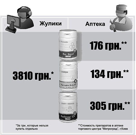 Там нас и ждал сюрприз. Мы разыскали представительство Garden State Nutritionals в Украине. Узнали там аптеку, где продаются препараты. И позвонили туда с вопросом о ценах. Внимание! Bee Royal - 176 грн., Exclzyme EN - 305, Norwegian Kelp GP- 134... В восемь раз дешевле, чем продавал «специалист-онколог Николай Петрович»!