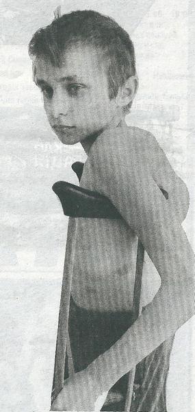 У лютому і в березні цього року «Вісник» писав про хлопчика Романа Лисачова з селища Дмитрівна Бахмацького району. Одна нога на 5 сантиметрів коротша за другу, страшно скривлений хребет. Дитину-інваліда ростить мати Тамара Лисачова. Батько помер. У сина й матері однакова хвороба, нейрофіброматоз. Проявляється, у тому числі, кістковими змінами.