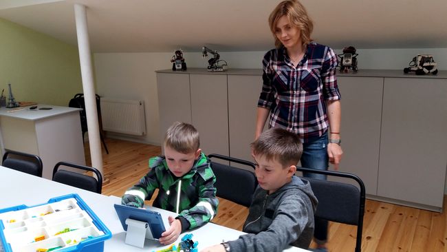- Дети постарше - от 10 до 15 лет с помощью Lego mindstorms EV3 научатся работать в команде, узнают много нового о физических процессах, изучат датчики, сенсоры, смогут собрать робота и запрограммировать его. Занятие для них длится 2 часа и стоит 120 гривен, 6 занятий – 650 и 16 занятий – 1600 гривен.