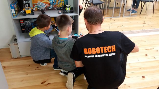 Папа Леонид Грек вместе с 5-летней доченькой Аней и 9-летним сыном Владом тоже зашли в клуб на пробное занятие. Влад признался, что ему нравятся всякие механизмы и загорелся желанием построить робота.