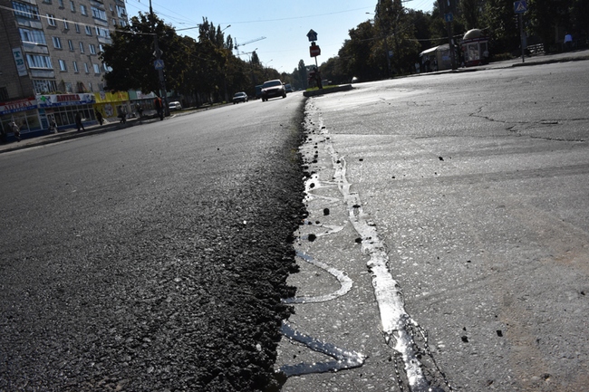 Відповідно до планів, до кінця цього року вирівнюючий шар асфальту буде на одній полосі руху по всій довжині цієї вулиці.