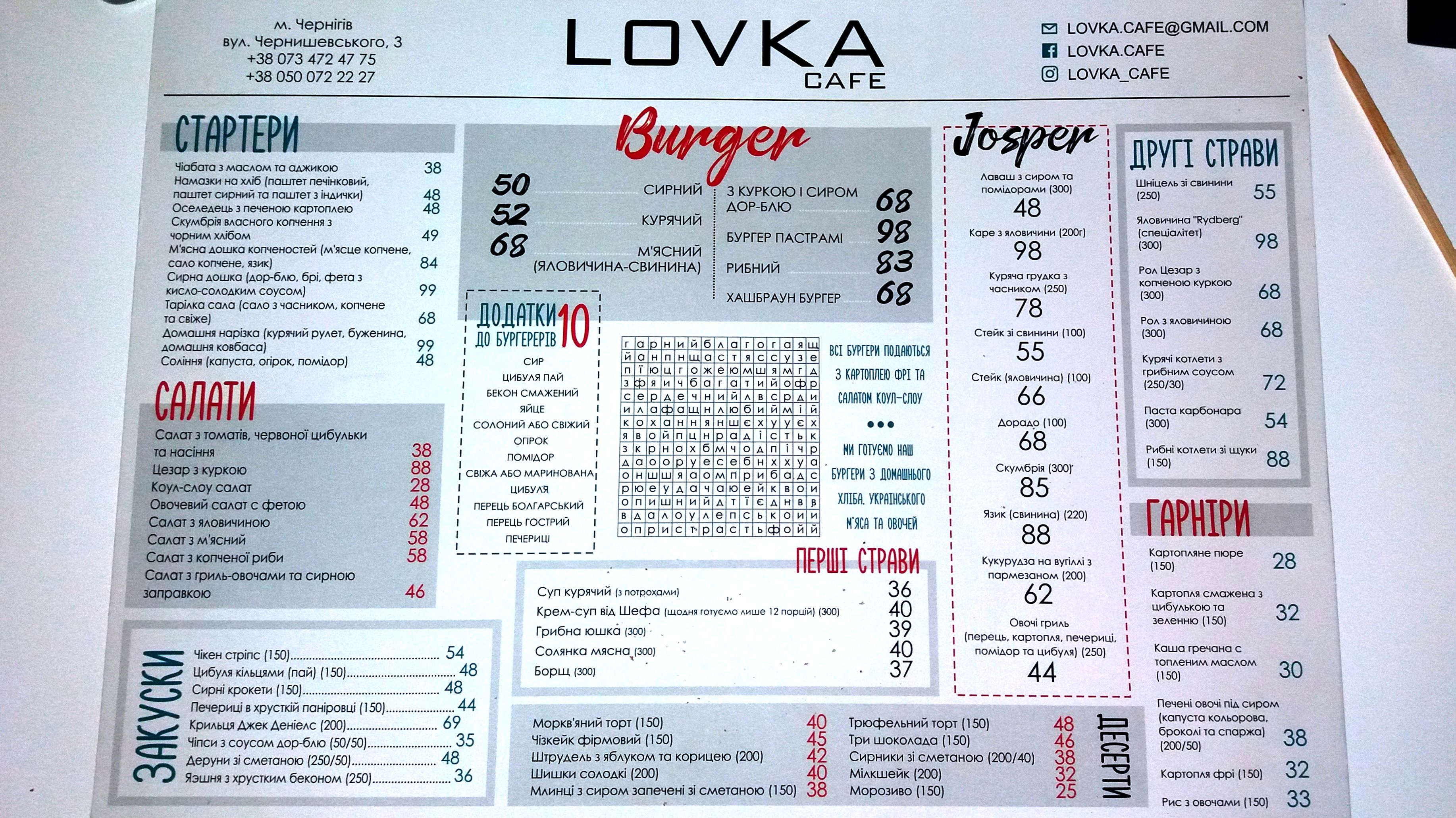 По-видимому, руководствуясь идеей полного преобразования и начала чего-то нового, около месяца назад ресторан «Кардинал» превратился в кафе с не совсем понятным для горожан названием «Lovka».