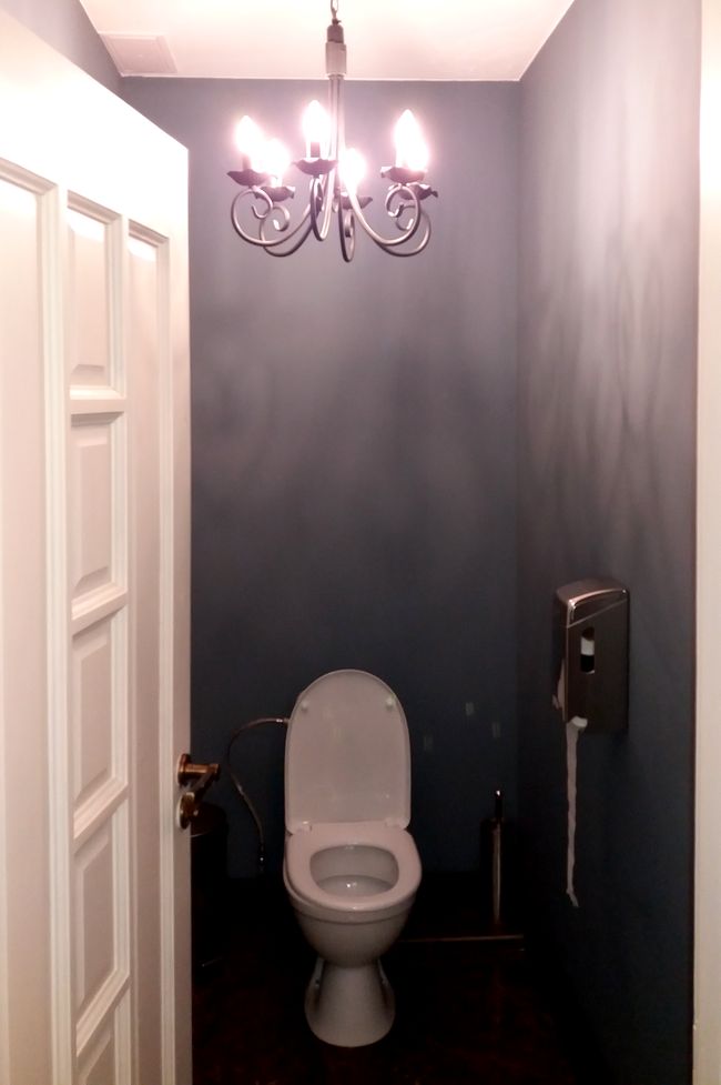 Туалетная комната состоит из трех кабинок, и предназначена, как для мужчин, так и для женщин, что не совсем комфортно. Но светильник с канделябрами в одной из кабинок просто покорил.