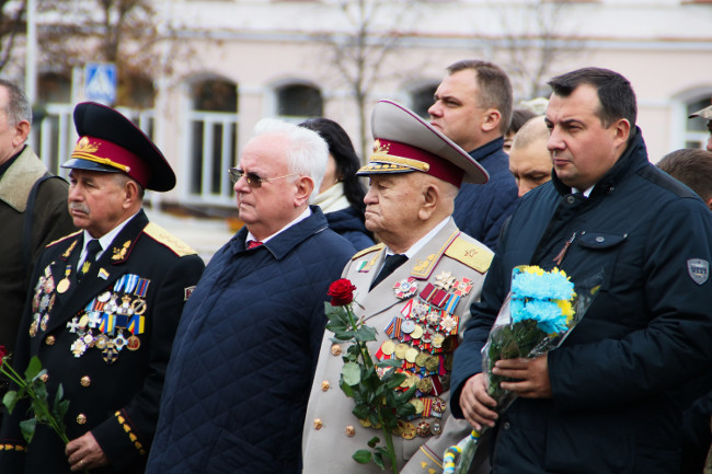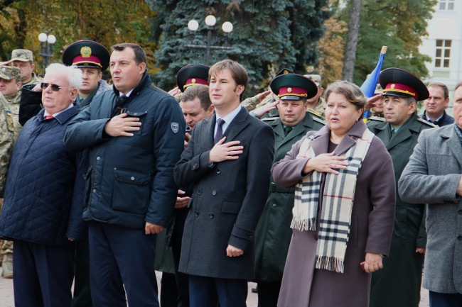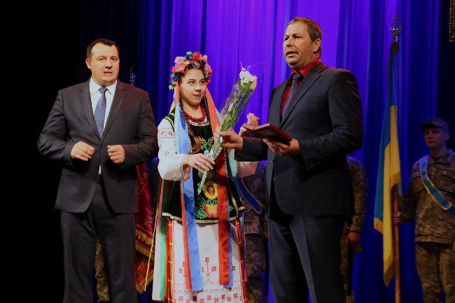 Торжества продолжились в Черниговском областном академическом украинском музыкально-драматическом театре им. Т. Г. Шевченко, где руководители области и города поздравили всех с праздником и вручили награды и благодарности военнослужащим и членам семей воинов погибших в зоне АТО.