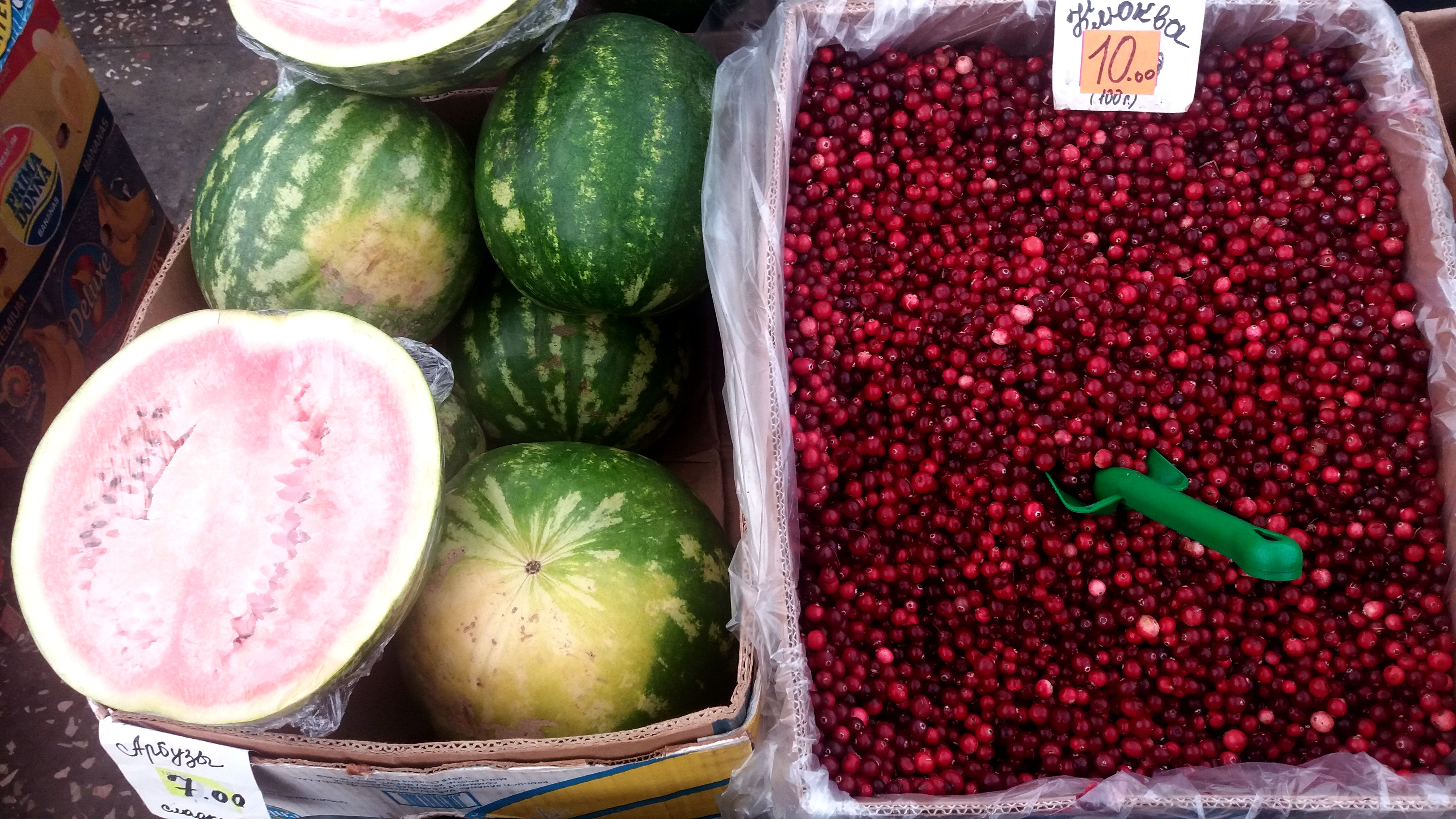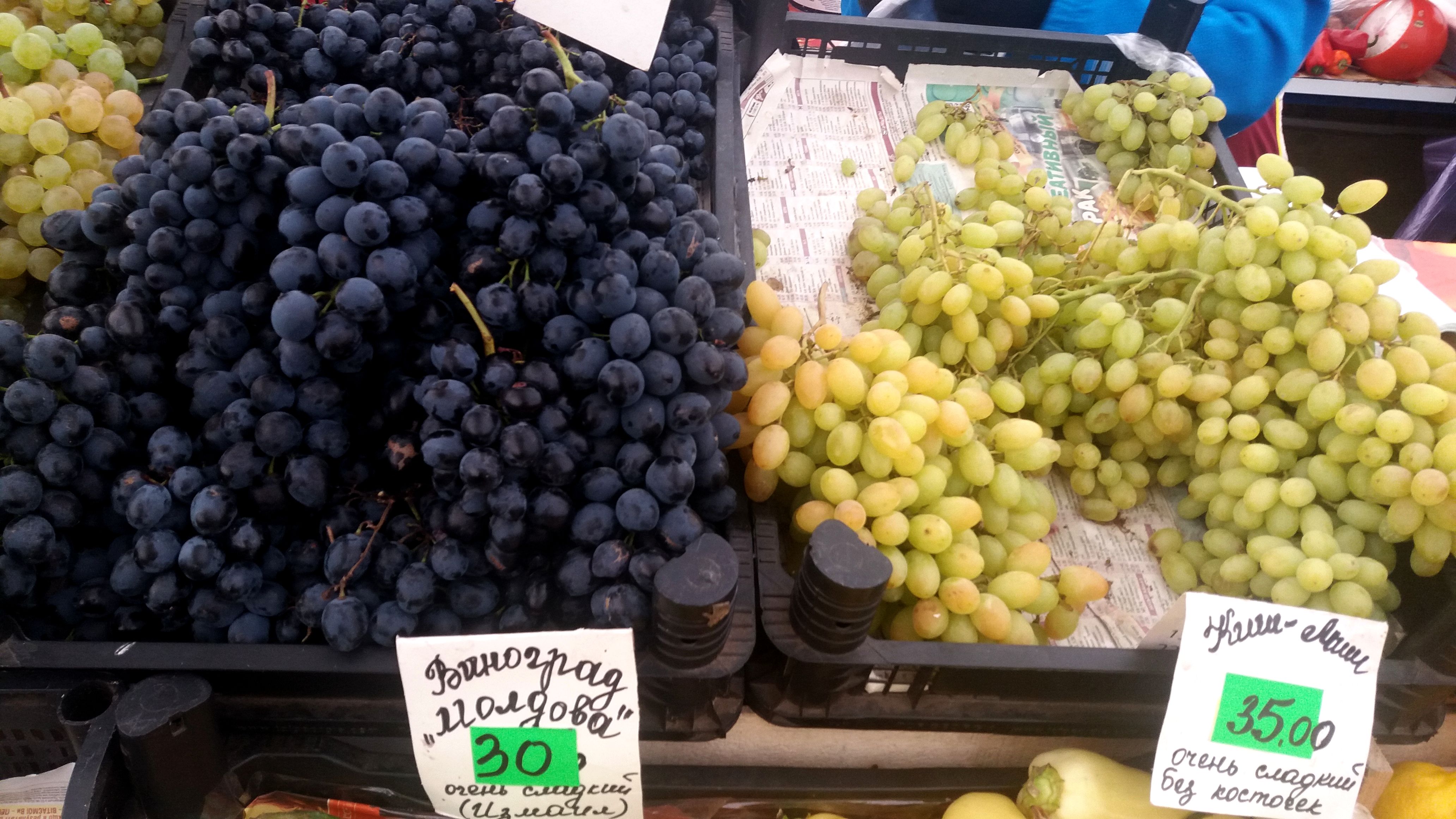 Что ж, на этом рынке есть всё, что душа пожелает. Что касается овощей и фруктов, у продавцов здесь всегда аккуратная выкладка, и торговые ряды заполнены разными сортами винограда, яблок и груш, болгарским перцем, цветной и пекинской капустой, картошкой, редькой и другими овощами. Расширился ассортимент цитрусовых. Появились на рынке испанские мандарины и клементины (гибрид мандарина и апельсина-королька), помело, узбекская хурма и гранат. Октябрь - месяц сладких мясистых тыкв.