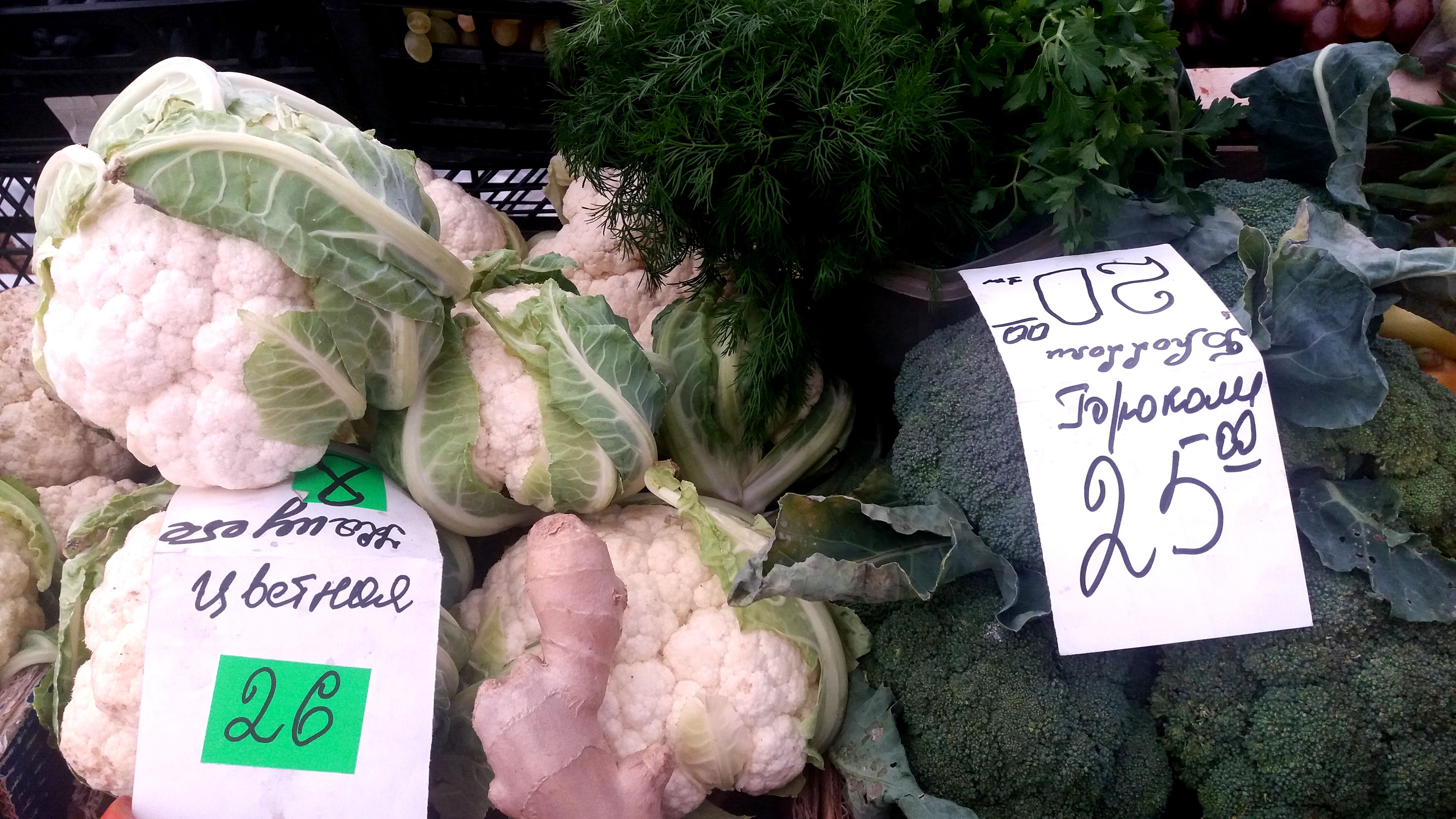 Закончился сезон овощей, выращенных в открытом грунте, поэтому, цены на них немного поднялись. Цена на кабачки выросла от 10 грн. до 20 грн. за 1 кг, на перец «Белозерка» от 13 грн. до 25 грн., на красный болгарский – от 18 до 30-50 грн., на помидоры сливки от 13 до 23 грн., цветную капусту от 15 до 25 грн., на огурцы от 18 до 27 грн. за 1 кг. Чеснок в этом году, что называется, уродил. И стоит 60 гривен за 1 кг, в сравнении с октябрем прошлого года, когда он стоит 100-120 грн.