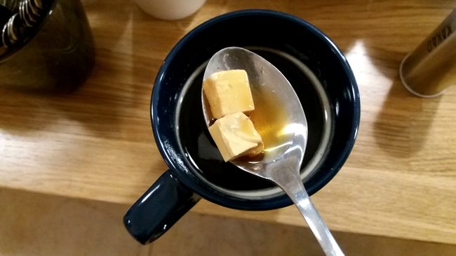 Но Виктория предложила очень особенный Лапландский кофе (23 грн.) На дно чашки кладут кубики сливочного сыра (в Швеции – кубики лапландского сыра), немного смородинового джема и заливают кофе. Можно ложечкой сначала съесть кубик сыра и запить кофе. Признаться, ну очень вкусно!