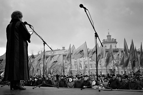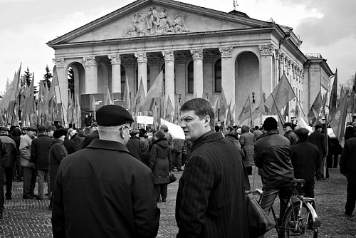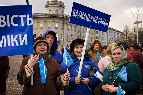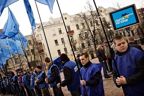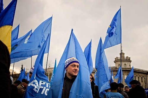 Около 2 тыс. митингующих собралось в центре города под флагами Партии регионов с требованием отставки руководства страны.