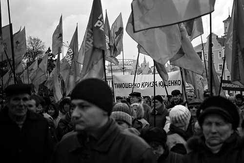 Митингующие держали транспаранты с лозунгами «Тимошенко, Ющенко — нет!», Тимошенко ответит за развал экономики», «Тимошенко, нам с тобой не по пути...» и другие.
