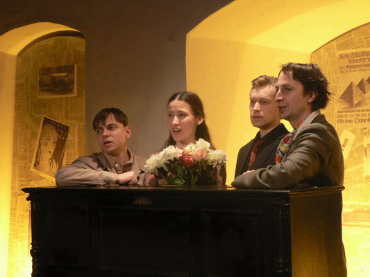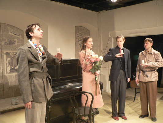 Говоря об этом спектакле, главреж Молодежного театра Геннадий Касьянов все время использует слово «инсценировка» — наверное, справедливо, если учесть, что Ремарк в «Трех товарищах» дает целую панораму событий и характеров, что слишком масштабно для нашего театра, и поэтому черниговскому зрителю предлагается только самая суть. Не роман — впечатления о романе.