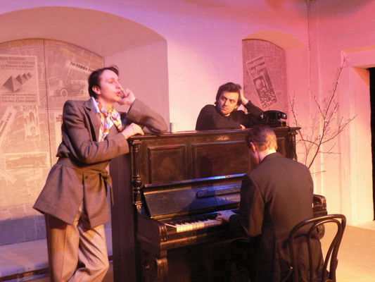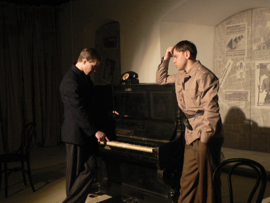 В спектакле много музыки. Живой: специально куплено старинное немецкое пианино, с его помощью пытаются сплести в одном венке текст, ощущения, состояния главного героя.