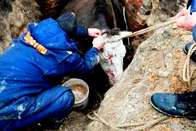 Александр Николаевич рассказывает: ему уже приходилось спасать коня из канализации (упал во дворе в яму, прикрытую шифером), телку из колодца, из которого вынули кольца и тоже едва прикрыли (животное провалилось туда задними ногами).
