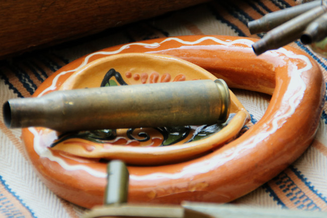 Він, будучи рядовим добровольчого особливого батальйону спеціального призначення, збирав усі ці військові артефакти та передавав їх митцям. Так було зібрано понад 200 експонатів. Ящики з-під набоїв, боєприпаси, гранатомети, бойові прапори, технічні засоби, фотографії бійців з передової та інше військове приладдя. Все воно було передано на мирну територію, де митці з усіх куточків України, серед яких і безпосередні учасники АТО, прикрашали цей бойовий арсенал.