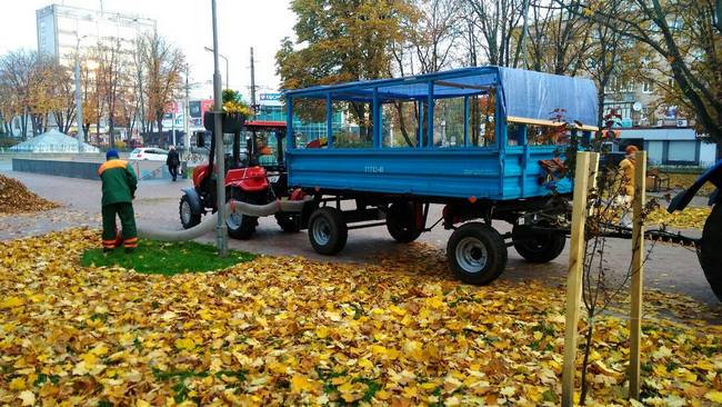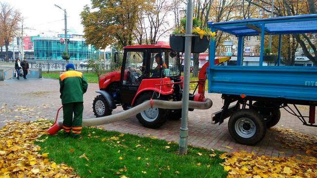 Чернігівські комунальники опале листя збирають спеціальним пилососом