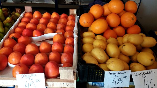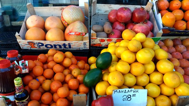 Как и на других рынках, сейчас большой выбор винницких и черновицких яблок и груш, украинского и турецкого винограда. Начался сезон граната и цитрусовых: мандаринов, грейпфрутов, апельсинов, помело. Также появилась в продаже азербайджанская хурма, грузинская айва, авокадо из Бразилии.