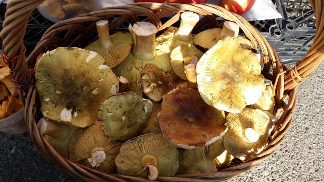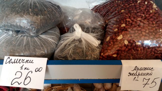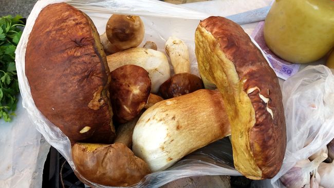 Местные жители торгуют лесными грибами, урожай которых в этом году небывалый. Жаль, только, что эти белые - уже последние, поэтому, нужно непременно купить, заморозить или засушить на зиму. И даже, осенний сорт малины есть в продаже. Также, самое время запасаться грецкими орехами.