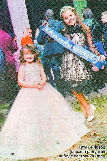 - У меня в Чернигове есть подруга - Ирина Ковтун. У ее 13-летней дочери, тоже Кати, много побед в различных конкурсах, в том числе и в Международном фестивале красоты «Принцесса мира», — рассказывает Юлия Билозор. — Мы стараемся равняться на нее. По Ириной подсказке в прошлом году и наша Катя испытала свои силы и завоевала титул «Мини-мисс Чернигова».