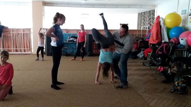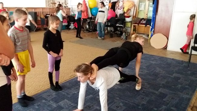 Таким образом, я собрала группу детей из 15 человек от 7 до 10 лет и начала проводить бесплатные занятия в школе-гимназии №31. Родители активно участвовали в реализации моей мечты. Папа изготавливал всевозможный реквизит: обручи, гирьки, мячики, реквизит для жонглирования, а мама шила цирковые костюмы.