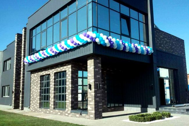 Так, недавно, мы украшали шариками фасад и холл нового производственного комплекса «ПЭТ Технолоджис Украина», который открылся у нас 20 октября.