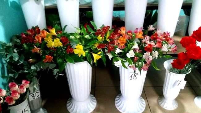 - Свежие цветы (срезы) и букеты хранятся в специальной холодильной камере с кондиционером при определенной температуре воздуха +5,5 С в среднем в течение недели. 2 раза в неделю мы обязательно меняем воду в вазах для цветов. В это время года в камере у нас есть розы, хризантемы, тюльпаны, альстрёмерия, ирисы, гвоздики, зелень для составления букетов (гипсофила, фисташка, рускус, эвкалипт, берграс, феникс-робелинни и др.), составленные букеты.