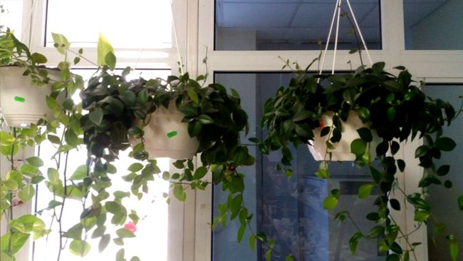Сциндапсус (слева) – неприхотливая тропическая лиана. Листья сердцевидные, блестящие, бывают ярко-зеленые или пестролистные с пятнами разнообразных форм. Растет очень быстро, за год отрастает больше чем на метр, может карабкаться по стене или свисать вниз. Цена 180 грн.