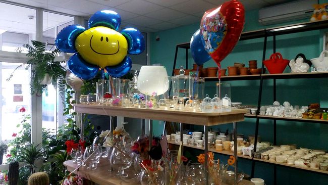В нашем магазине можно приобрести вазоны для цветов (пластиковые, керамические, эковазоны), флористические кашпо (в упаковке 8 штук от самого маленького за 15 гривен до самого большого за 90), корзинки для цветов, стеклянные вазы разных размеров и форм, подвесные светильники; китайские фонарики; все необходимые средства по уходу за растениями, грунт для посадки; разнообразные фигурки для изготовления декоративных украшений (браслетов, заколок, обручей для волос и т.п.).