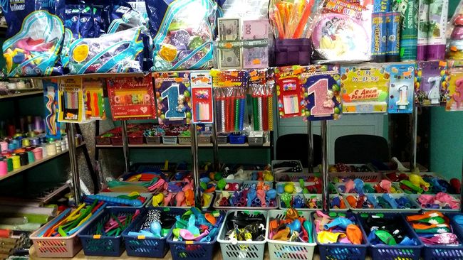 - Для цветочных композиций у нас есть упаковочная бумага, флизелин, сетка, калька, целлофан; разные виды декоративных ленточек, подарочных коробок разных форм, начиная от самой маленькой (2*2 см). Также, к цветочным букетам прилагаются пакеты, сумочки, открытки, всевозможные разноцветные шарики, мягкие игрушки, копилки в качестве подарка; праздничная атрибутика (колпачки, гирлянды, трубочки для напитков, фотобутафория, свечи для торта, конфетти и т.п.)