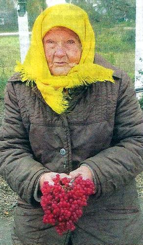 — Десяток яєць продаю по 30 гривень. Картопля велика, різних сортів, по 6 гривень за кіло. Гарбузи маленькі, великого не донесу. А всередині червоний,як жар, смачний. Пучок калини — 10 гривень. Торгівлі, правда, немає ділов. Привозить сюди машиною онучок Сергій, йому 25 років.