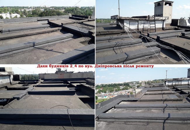 На фото: крыши домов №№ 2,4 по Днепровской через месяц после ремонта