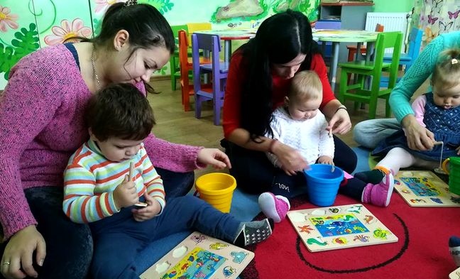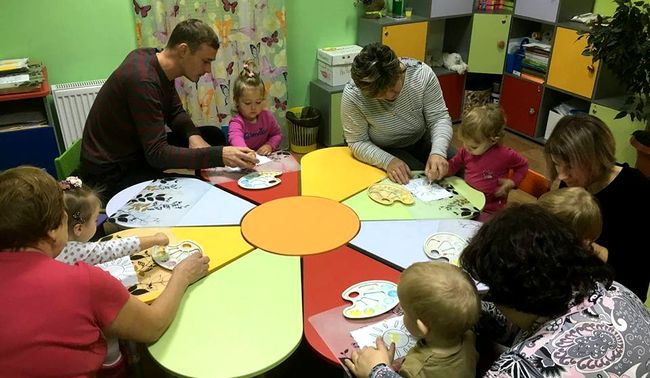 - Группа от 2-х до 3-х лет (от 2-х лет занятия проходят в основном с нашими педагогами, но по желанию взрослые могут присутствовать). Либо, пока детки занимаются, взрослые находятся в нашем центре, пьют чай или кофе, смотрят телевизор и общаются между собой.