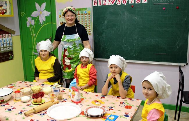 Кроме этого, по субботам дети занимаются в группе выходного дня. Еще одно из направлений развития ребенка – это кулинарное мастерство. Дети под руководством педагога учатся готовить разные блюда, затем кушают и угощают приготовленным своих родителей. Так, они научились готовить разные супы, холодный красный борщ с картофельными клёцками, фруктовые салаты, рулетики из кабачков и креветок, бутерброды, тёплый салат с печенью, вареники, печь пироги и кексы, и многое другое. А также, украшать свои творения и сервировать стол.