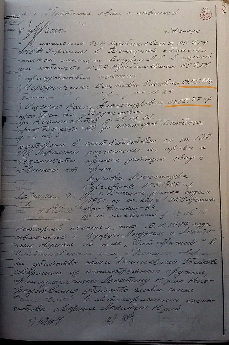 - Моя явка с повинной, составленая от моего имени и вопреки моей воле, сотрудниками милиции мною не подписана, в ней нет даже места под мою подпись. Хотя, согласно норм, действовавшего тогда УПК Украины - это обязательное требование к данному документу. Понятыми значатся люди, которые никогда по указанным адресам не проживали, это проверял мой адвокат. То есть явка сфабрикована от первого до последнего слова.