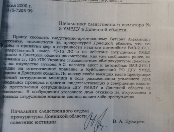 P.S. Прилагаем к статье электронную копию материалов из дела Александра Буглова (всего 197 стр. правки на полях и вступительная пояснительная часть - написаны самим Бугловым), которые ему удалось вытребовать из Донецкого Апелляционного суда и другие сопроводительные материалы из различных инстанций. Оригинал дела содержит 7 томов (также в нем присутствовало 20 видеокассет, которые были затем уничтожены под предлогом аварийной ситуации в архиве прокуратуры Донецкой области), в Генеральной прокуратуре хранится надзирательное дело, которое содержит 3 тома.