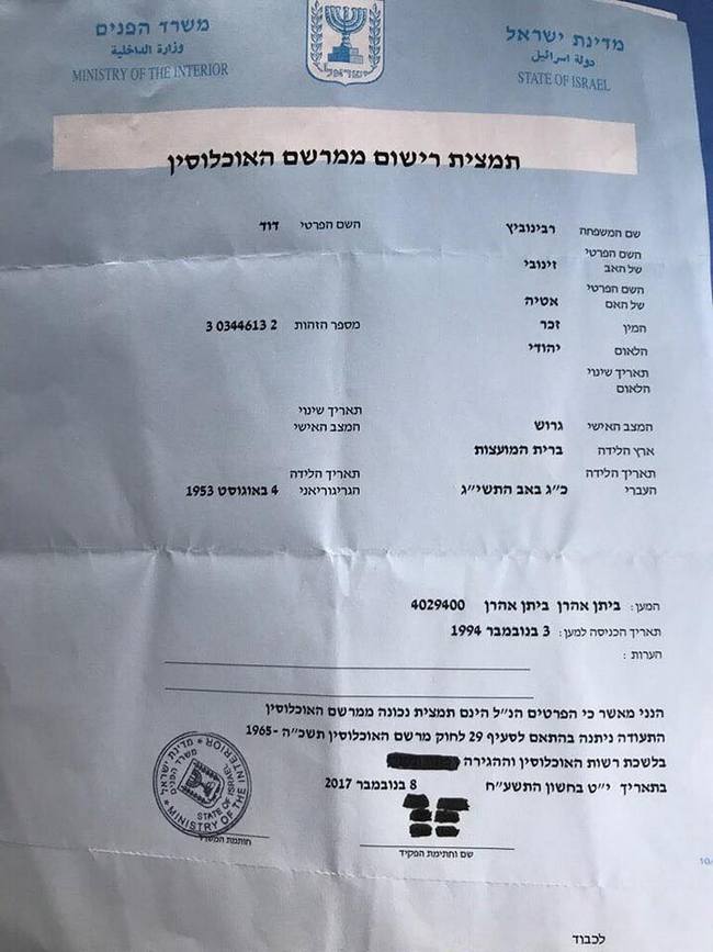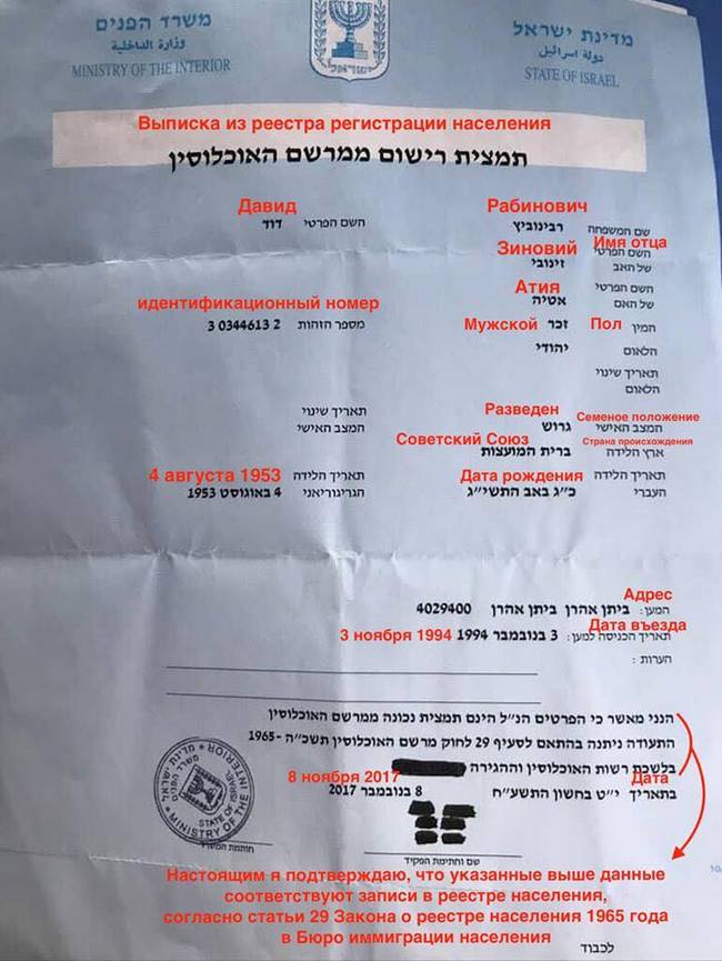 "У Рабиновича есть идентификационный номер, который дают только гражданам Израиля. Указан в выписке, - пишет блогер приводят сами документы.