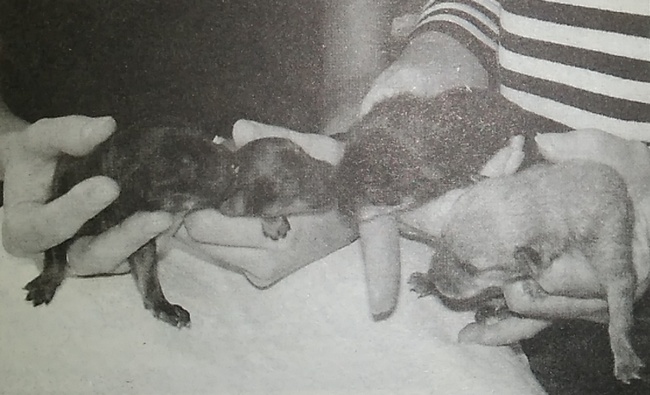 Теперь подруги по очереди ухаживают за малышами. Кормят их круглосуточно через каждый час подогретой смесью "Малыш" из импровизированной маленькой бутылочки с пипеткой вместо соски. После приема пищи новорожденным щенкам необходимо помассажировать животики, иначе пища не будет нормально перевариваться, и они могут погибнуть. Спят песики на мягкой подстилке в картонной коробке, на дно которой положены бутылки с горячей водой.