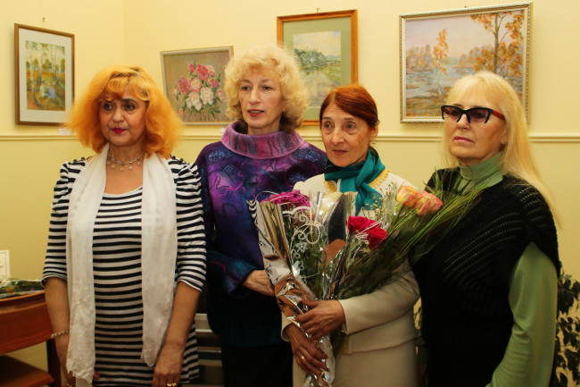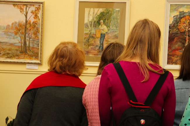 Цього разу, затишна Мистецька вітальня бібліотеки, ледь вмістила всіх бажаючих. Адже поздоровити художницю з її ювілеєм та відкриттям виставки прийшли її рідні та друзі, однодумці, юні художники, які тільки роблять свої перші кроки в мистецтві.