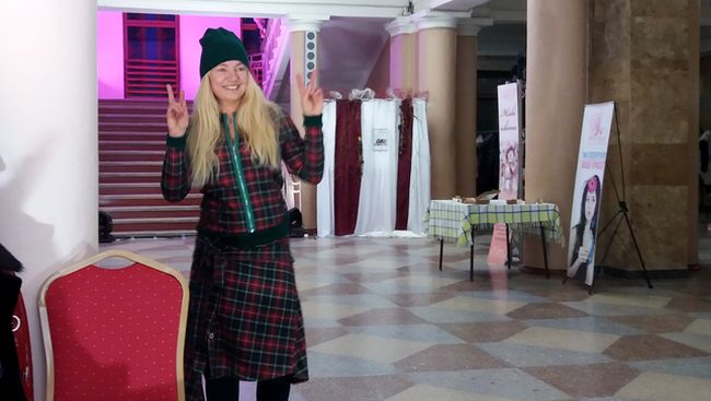 - Наталія Федориненко, керівник дизайн-студії «KRASNA», жіночого та дитячого одягу, учасниця багатьох виставок та фестивалів в Україні, показала колекцію одягу під назвою «Веселка», яка насичена яскравими барвами та кольорами. Наталія переконана, що місія жінки – нести красу, жіночність та радість в світ.