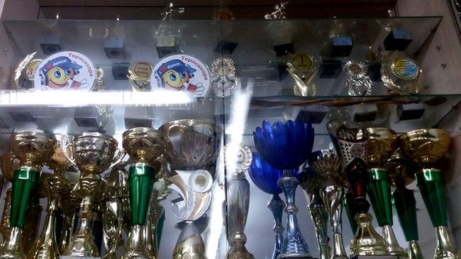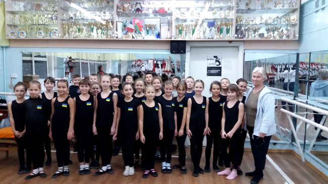 Сейчас занятия проходят в просторном зале под аккомпанемент игры на рояле. За стеклом просто огромное количество наград: вымпелов, кубков, грамот и дипломов. Наш корреспондент побывал на репетиции младшей группы девочек. Примечательно, что у каждого участника коллектива на форме украинский флажок. Галина Анатольевна с самого детства учит деток гордиться тем, что они украинцы!