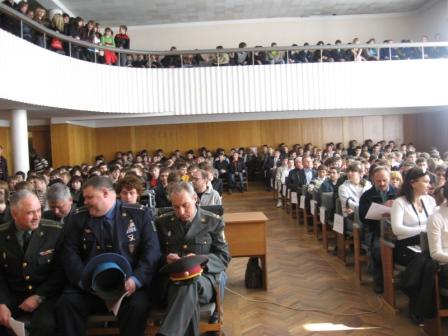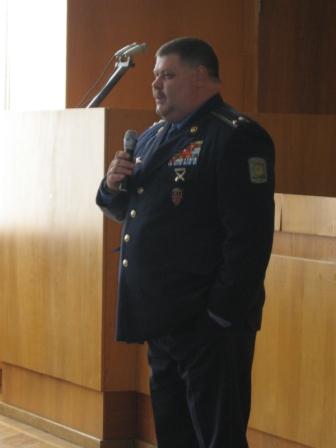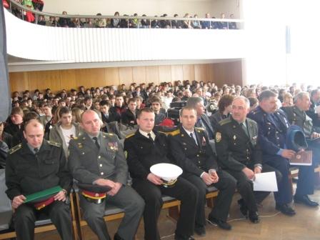 Про свої бойові подвиги та необхідність служби в армії майбутнім призовникам розповів бойовий офіцер української армії, учасник бойових дій в Афганістані, Косово, Македонії, С'єра-Леоне, Ліберії начальник командного пункту армійської авіації підполковник Сергій Шаповал.