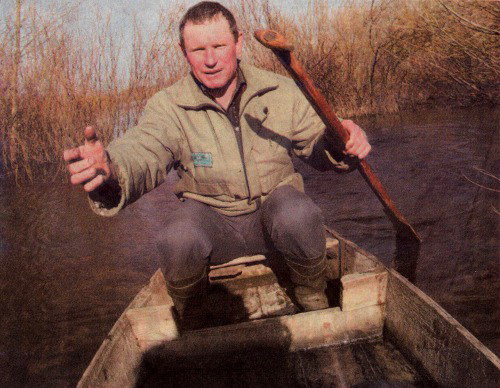 Розвертаємось, їдемо в сільраду. По дорозі зустрічаємо чоловіка з веслом. Він проводжає нас довгим поглядом.