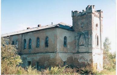 Біля замку, над річкою, ще за моєї пам’яті було довге приміщення з червоної цегли, де кухня, пральня, житло для деяких працівників. Пізніше (після війни) там розмістили шкільну майстерню по металу. Вся територія була обнесена високим валом. Ровом текла вода і плавали лебеді. Від замку до церкви вела алея. Далі через рів - місток, під ним - грот, яким текла вода. Він (грот) зберігся і донині. Правда, не в зовсім належному стані. З північного заходу текла річка Супій. Був фруктовий сад. Росли і декоративні дерева та кущі. Все обгороджене і охоронялось. Стояв біля в’їзду будинок-сторожка, де перебували вартові, пам’ятаю. Пізніше жили в ньому робітники цукрозаводу.